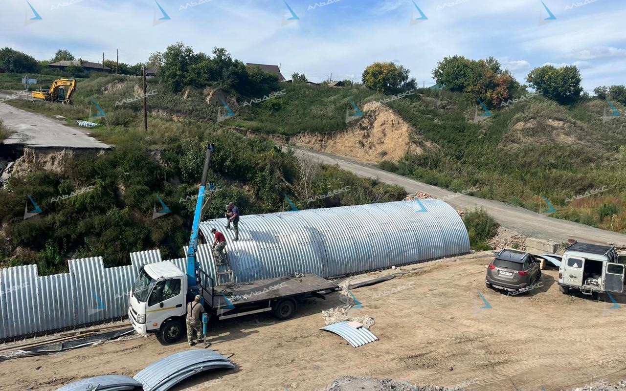 Такой пример демонстрирует эффективность применения арки из гофрированных листов ЛМГ как надежного и долговечного элемента дорожно-транспортной инфраструктуры.