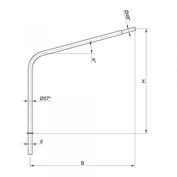 Однорожковые кронштейны К1-1,2-0,5-0-1 предназначен для крепления светильника на трубчатой опоре освещения. Завод опор освещения «Альдекс» изготавливает однорожковые консольные кронштейны из стального проката. Собственное производство позволяет выполнять изделия надлежащего качества и в кратчайшие сроки. Конструкция однорожковых кронштейнов К1-1,2-0,5-0-1. Конструкция консольных однорожковых кронштейнов К1-1,2-0,5-0-1 представляет собой гнутую металлическую трубу заданных размеров.