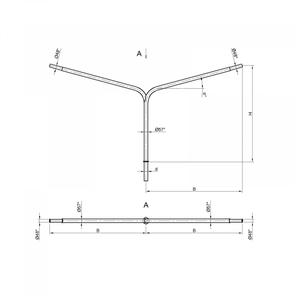Двухрожковые кронштейны К3-2,5-2,5-1-1 предназначены для крепления светильника на трубчатой опоре освещения.